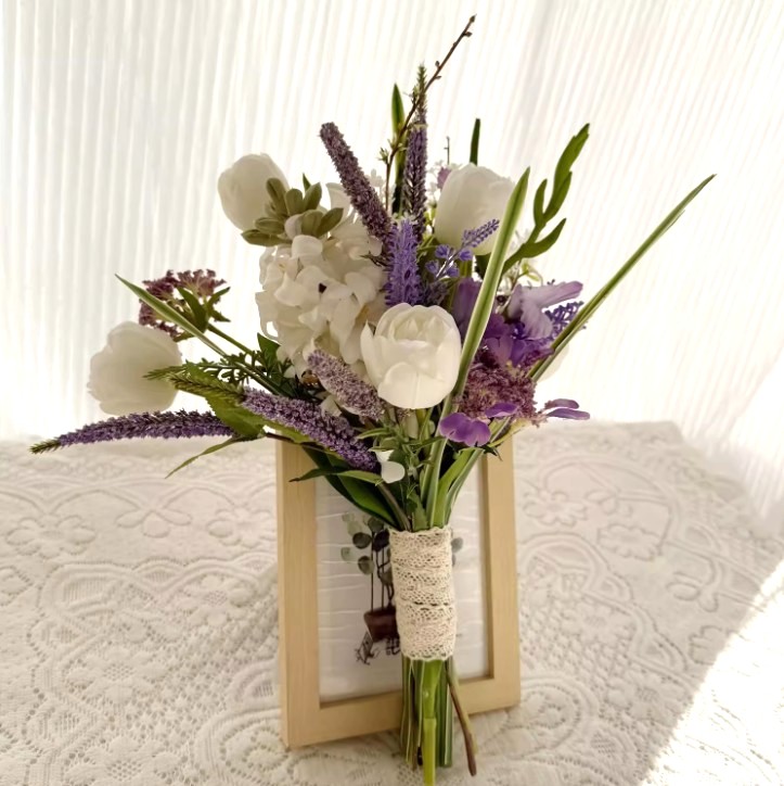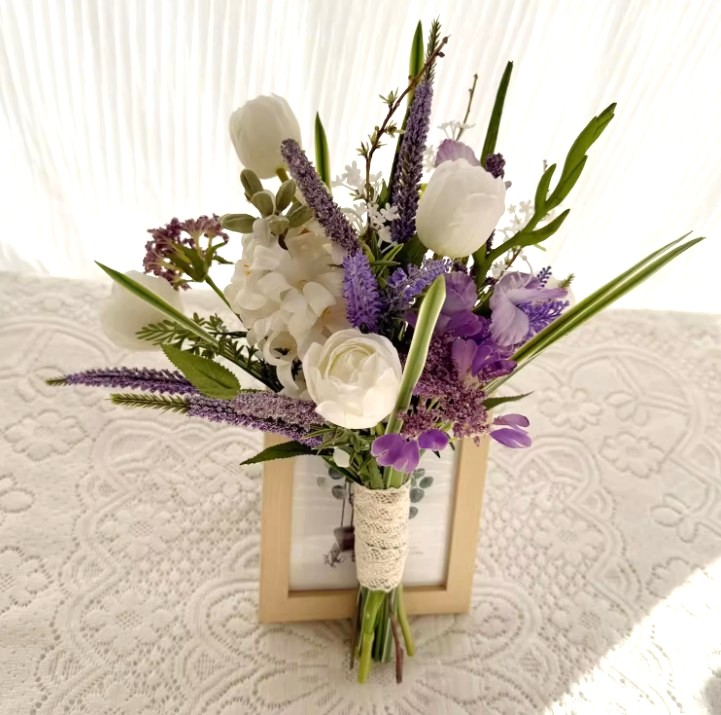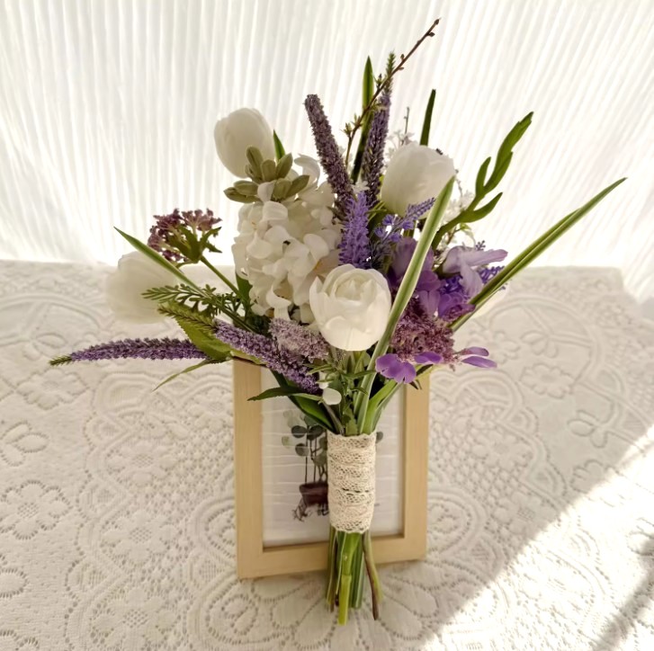 Each bloom is crafted from premium silk flowers, offering a lifelike texture and lasting beauty that won’t fade. The stems are finished with rustic lace ribbon, adding a gentle, handcrafted touch to the arrangement.