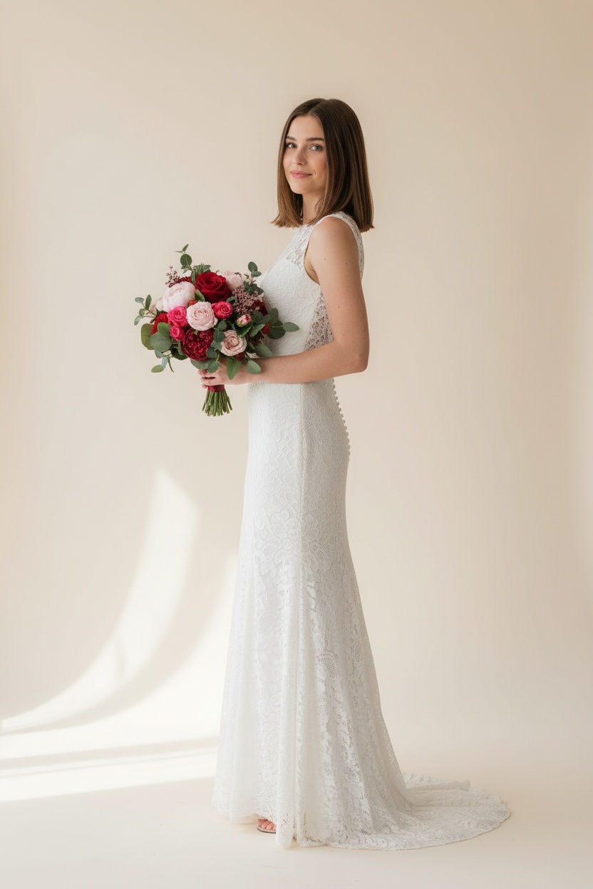 This smaller vision* is the best for the bridal party, bridesmaid to match with the original size with the bride – Forest Hot Pink & Purple Red, Red Silk Flower Bouquet. Because they are custom size, the last two images are a demonstration of how they look compare to the standard one.
