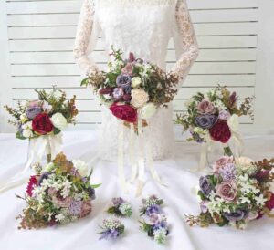 This Elegant Purple, White Peony & Rose Silk Bouquet is a combination of Roses, Peony and greenery etc